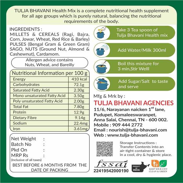Our Tulja Bhavani Health mix is prepared with 14 vital grains must required for our health.